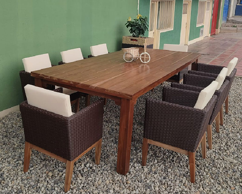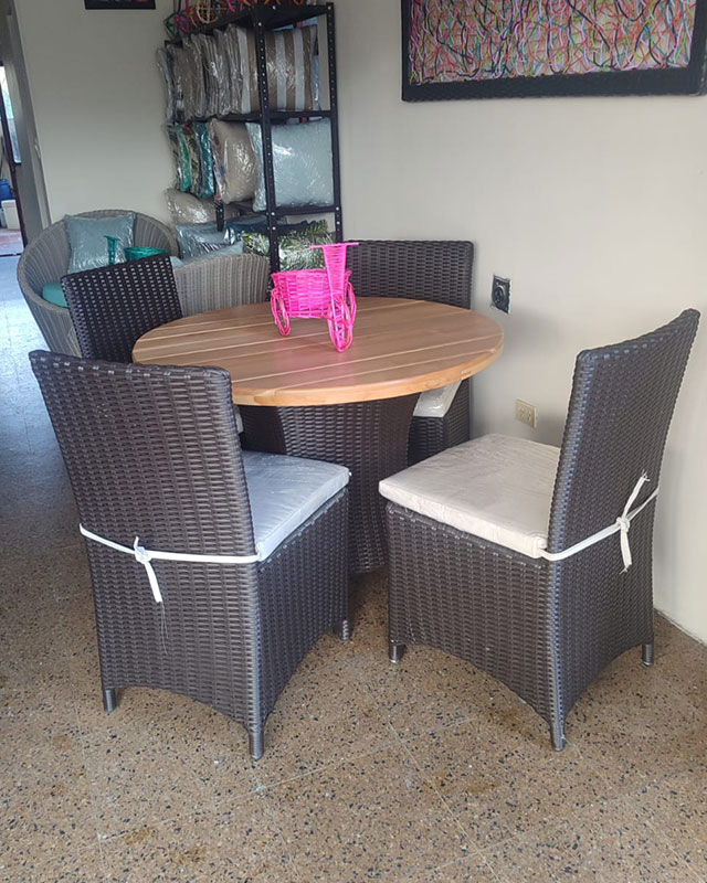 Nuestro proceso de fabricación es un testimonio de la dedicación artesanal y la atención al detalle. Cada pieza de mobiliario es el resultado de un meticuloso trabajo manual, donde el arte del tejido con rattan cobra vida en las manos expertas de nuestros artesanos. Este material noble y versátil se entrelaza con precisión, creando patrones intrincados que no solo son estéticamente agradables, sino también duraderos y resistentes a la intemperie. Paralelamente, nuestra pasión por la madera se refleja en cada corte, cada lijado y cada acabado. Utilizamos maderas seleccionadas cuidadosamente por su calidad y sostenibilidad, transformándolas en estructuras robustas y elegantes. Cada mueble es tratado como una obra única, incorporando detalles exclusivos y acabados personalizados que reflejan la visión de nuestros clientes. Este enfoque artesanal nos permite ofrecer no solo muebles, sino piezas de arte funcional que elevan cualquier espacio exterior.